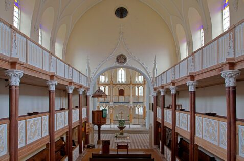 Visible from afar, the neo-Gothic church tower of St. Petri stands out above the Garden Realm and marks the heart of the UNESCO World Heritage Site in Wörlitz. The brick tower measures 66 meters and was probably the last major construction project in Wörlitz Park under Prince Franz.